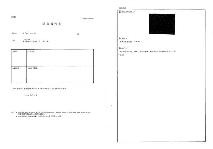 季節・天気を問わず紫外線は一年中降り注いでいます。第2弾では表生地に紫外線遮蔽率98.5%、UPF50+のUVカット加工を施しています。