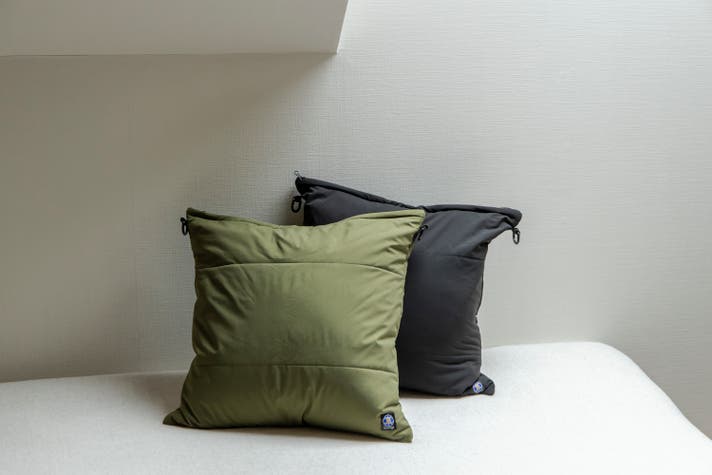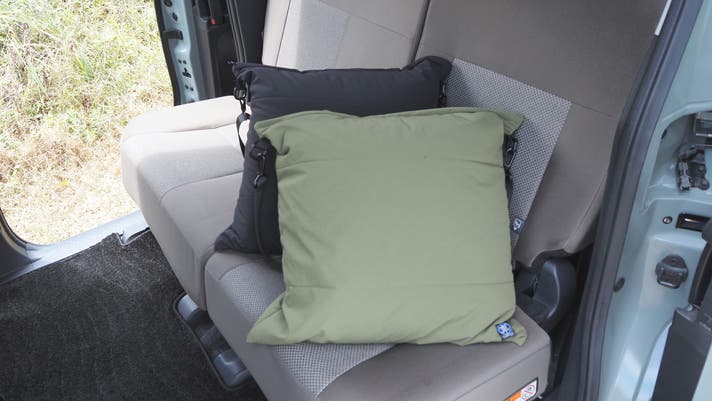 電気もガスも灯油も使わない「モモンガ」はアウトドアシーンやご自宅使い、車中泊、防災用など様々な用途で年間を通してご使用いただけます。普段は付属のカバーに収納してクッションとしてお使いいただけます。
