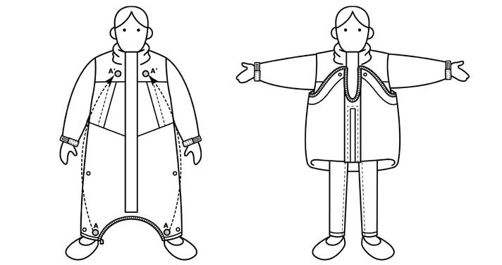 体温で暖めた空気を着ているので軽量・快適で、移動してもずっと暖かさに包まれます。