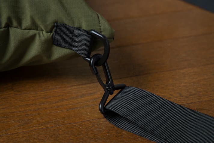 モモンガを収納したクッションにショルダーベルトを着脱できるようにしました。モモンガを持って公園やキャンプに出掛けやすくなりました。