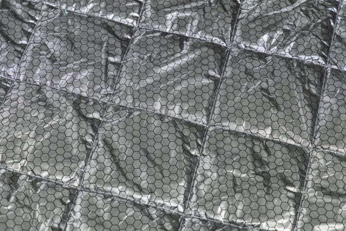 洗濯等による中綿の抜けを防ぐため、スパンボンド不織布で挟んでいます。これにより中綿の飛び出しを防ぎます。