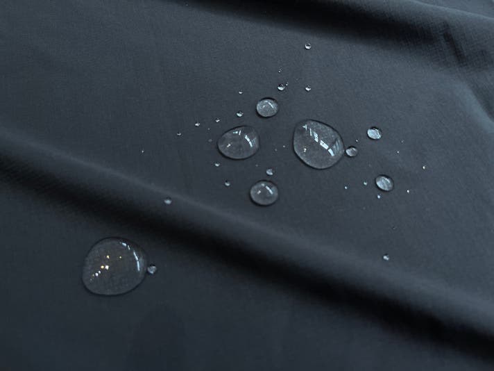 表地には引き裂け強度のあるポリエステルリップストップを使用しています。撥水加工を施しているので、水をはじき汚れにくくなっています。肌触りはマットでサラリとしています。