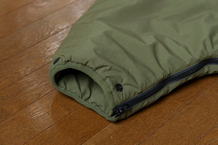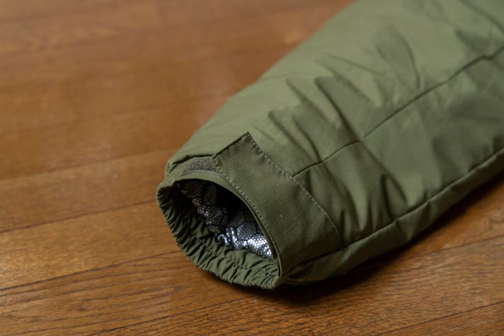 袖口は面ファスナーで調整可能、足口はリブで冷気の侵入を防ぎます。