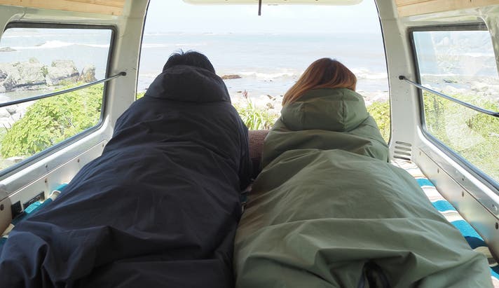車中泊の旅でも暖かさを着たまま動けるのでとても便利です。