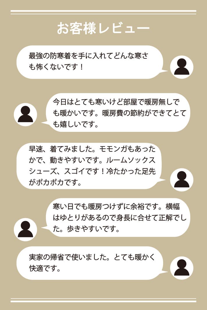 - 熱源は自分の体熱!真冬の停電や突然の災害でも活躍、暖房費も節約、脱ぎ着もお手入れも簡単