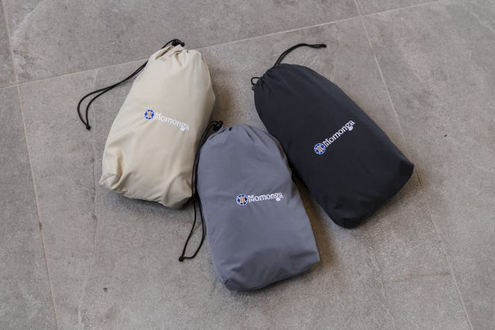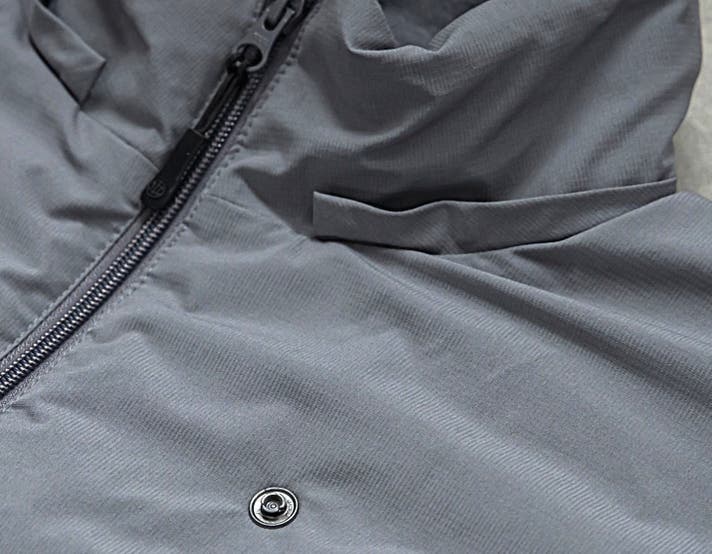 これまでのモモンガは表生地の伸縮性を出すためにポリウレタンを配合していて、少ししっかりした重さになっていました。モモンガは多層構造なので表生地の伸縮性と着心地の関連は薄いと考え、表生地を軽量のリップストップ生地に変更しました。これは実はモモンガ第1弾で使用したたいへん好評をいただいた生地になります。