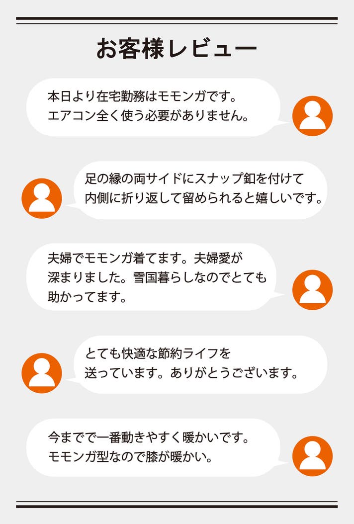 もちろん毎日の生活でも活躍してくれます。暖房をつけても部屋が暖かくなるまで時間が掛かりますが、「モモンガ」は着た瞬間から暖まることができます。快適な着心地で心安らぐお時間をお過ごしください。