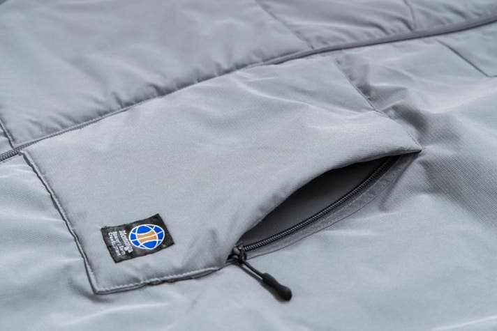 今回のモモンガではキルティングのミシン穴から熱が逃げるのを防ぐため、中綿キルト加工を裏地側に変更し表面のキルトステッチを無くしました。サーマルマネキンを使って第三者機関で保温テストを行い効果を検証しました。