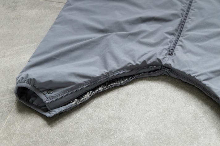 体温で暖めた空気を着ているので軽量・快適で、移動してもずっと暖かさに包まれます。