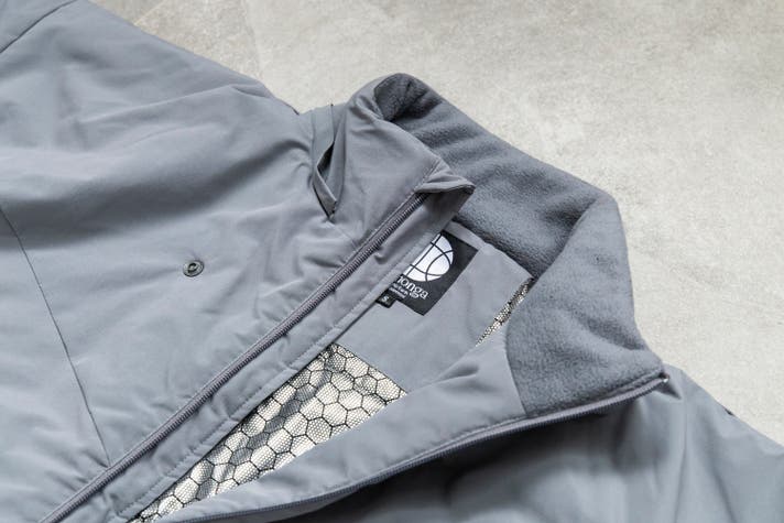 フロントファスナーの一番下まであるファスナーガードが着心地を向上させ、冷気の侵入を防ぎます。