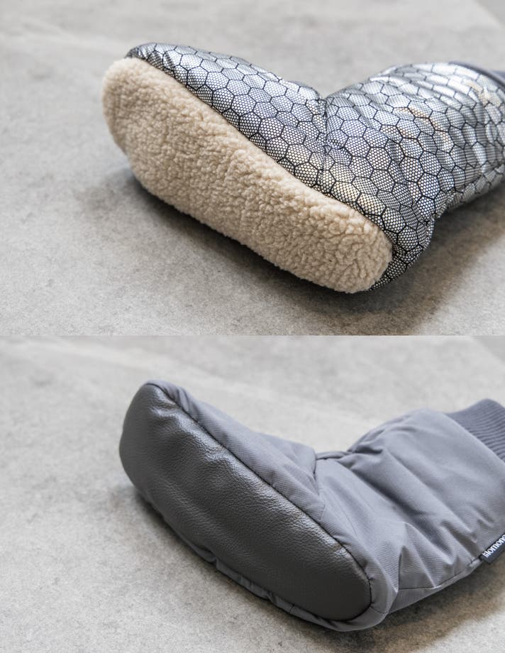 モモンガ本体と同じ保温裏地を使っています。内底にはボアを使っているので履いた瞬間から暖かく、外底はフェイクレザーで滑りにくくなっています。
