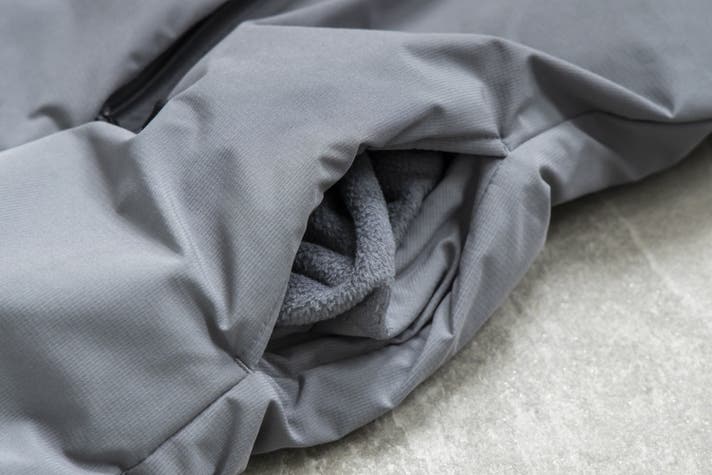 ボトムポケットの袋布は手指を暖めるフリース素材となっています。