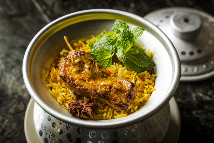 締めは、二人用の鍋で供される”季節のビリヤニ”。