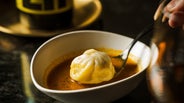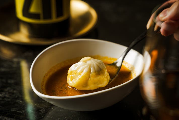 MOMO Stand Tokyoがオープン以来ずっと提供をしているシグネチャーの”ポークモモ”は、大豆や胡麻を使ったスープにパクチーと紫蘇を添えて。