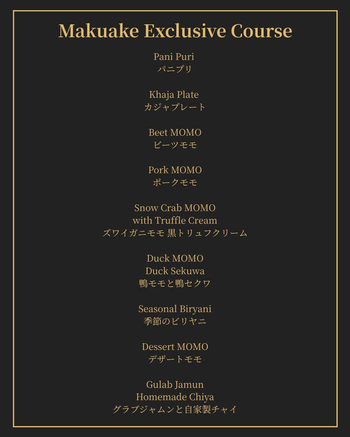 ① 会員限定ペアリングコース: モダンネパールとワインペアリングによる至福の食体験を味わえる特別なコースをMakuake会員限定でご提供