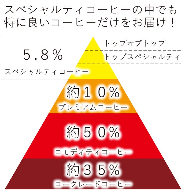 このため、僕たちは創業から一貫して、日本に5.8%しか輸入されていないスペシャルティグレード生豆(2016年度SCAJコーヒー市場調査より)の中でも、欠点豆が少なく、風味や味の特に優れた生豆だけを使ってコーヒーをお届けしてきました。