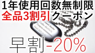 通販全商品3割引クーポン1年分:早割20%割引!70名限定80.000円