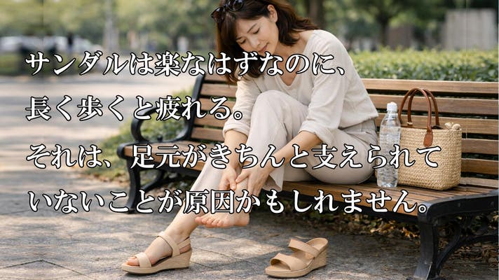 サンダルって楽だと思っていたけど…、それって足のアーチがしっかり支えられていないのかもしれません。