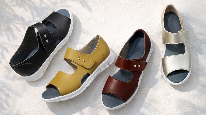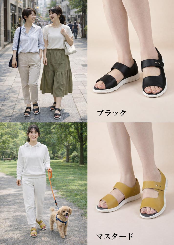 姿勢や歩き方が気になってきた、ラクさと上品さ、どちらも大切にしたい、そんな方の日常に寄り添う一足です。美姿勢を目指しながら夏のお出かけを楽しんでください