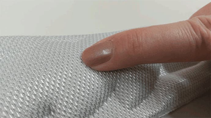 インソール素材は、足裏との一体感を追求し、足の裏の筋肉に近い硬さを目指しました。※本サンダルのインソールとは色が異なります。