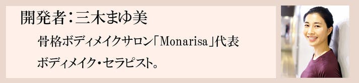 開発者の三木まゆ美氏は、独自の『骨格ボディメイク』メソッドを開発。多くの骨格ボディーメイクのセラピスト養成講座を運営。現在、受講者は延べ1000人を超える。各種企業とのコラボレーションによる商品開発、また骨格関連に関する書籍の出版、骨格メソッドの開発など多方面で活躍。