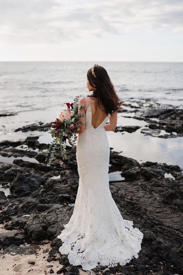 ドレスの中でも特に透け感がありながらも様々な模様のレースを使用した、身体をきつく締めない軽やかなもの、それが私が理想としたドレスでした。日本では手に入らないレースを海外に買い付けに行き、自分の既成概念を壊すような繊細かつ豪華な刺繍をされたものを目の当たりにし、二度と出会えるか分からないレースたちを買い漁りこのリバーレースを見つけたのです。