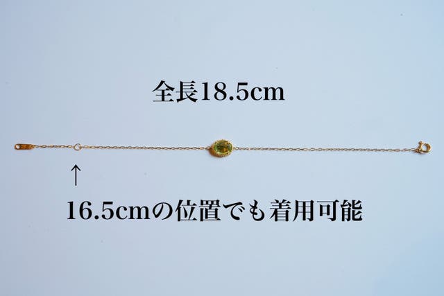 ※こちらはブレスレットを16.5cmで留めて着用した写真になります。