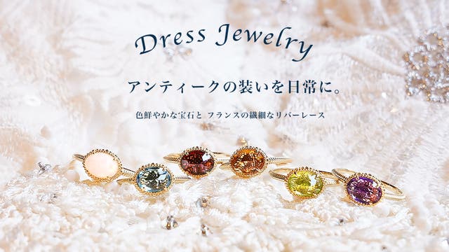 このコラボレーションは、特別な瞬間や日常の美しさを讃えるジュエリーと作り上げました。二つとして全く同じものがない色石に繊細なレースのデザインを施し、新しいジュエリーコレクションの誕生です。