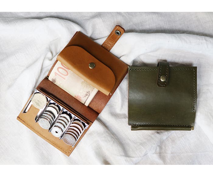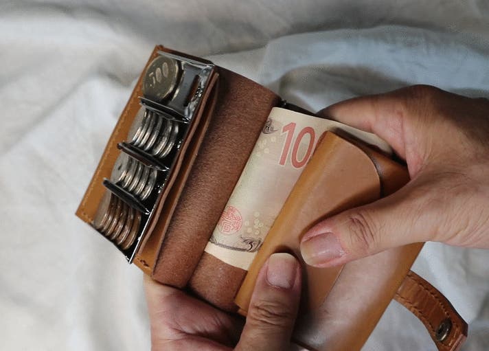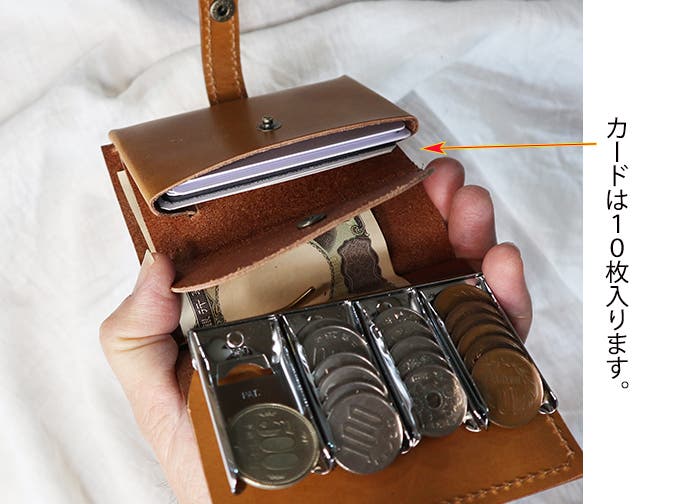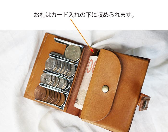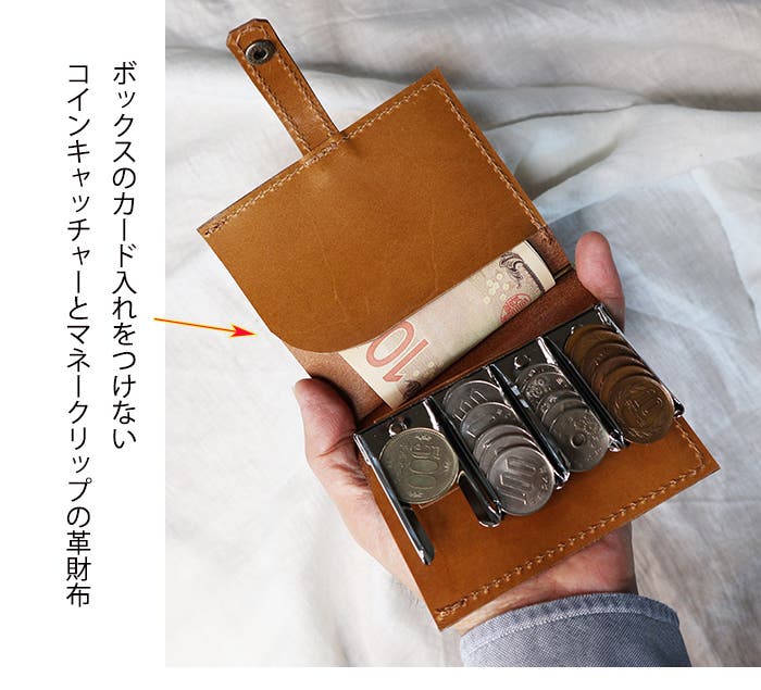 - 財布に必要最低限を詰め込んだコインキャッチャーとマネークリップを合わせた本革のハンドメイド財布
