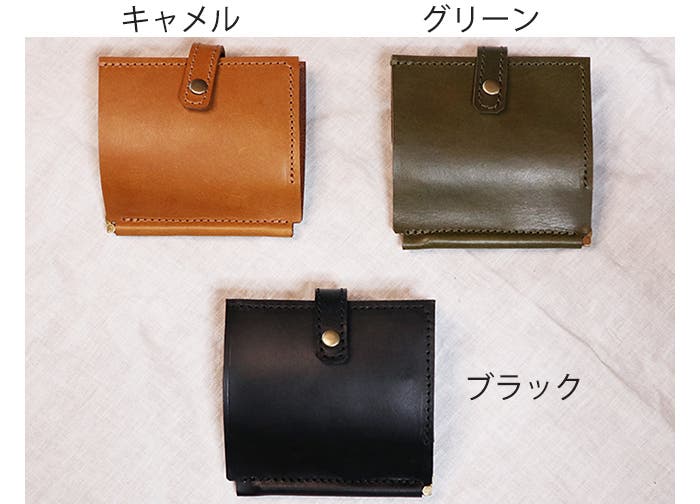 カラーバリエーションはキャメル、グリーン、ブラックの3色