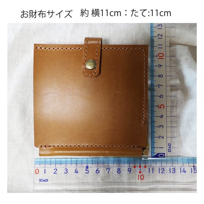 ヌメ革で作製したお財布なので、使用していくうちに経年劣化で革が手に馴染んでいき、革の色変化を楽しめるお財布です。