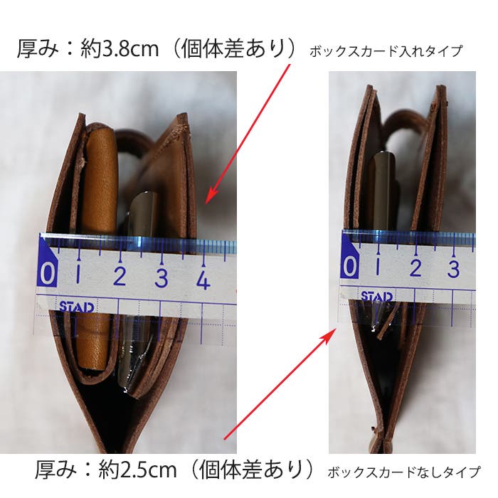 ボックス型のカード入れがついたタイプとボックスカード入れをつけないタイプの2通りあります
