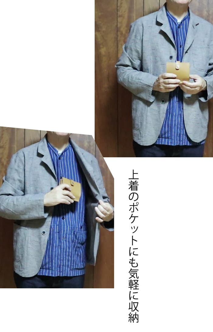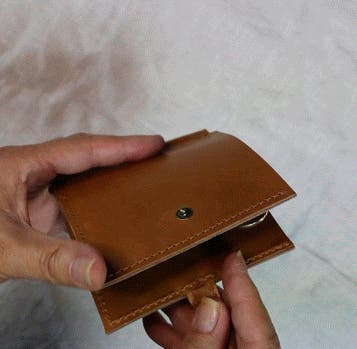- カード入れ部分は2バージョンから選べる 革はオイルを含ませたヌメ革でハンドメイドします。