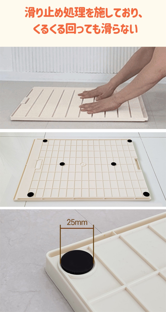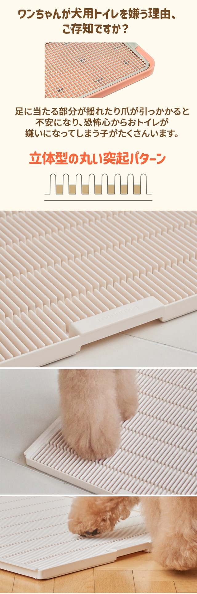 ワンちゃんたちはおトイレする前に、慌ただしくおトイレの上をくるくる回ったりします。このとき、おトイレが動いてしまい粗相してしまうアクシデントがよく起きてしまいます。本製品は滑り止めパッド付きで、安定感に優れています。