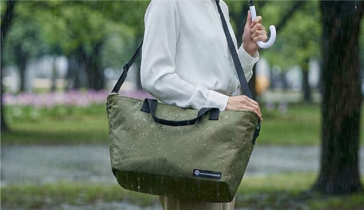なお、ファスナー部分や持ち手部分は一般的な縫製素材のため、大量の水分がかかると生地に水が染み込む場合があります。