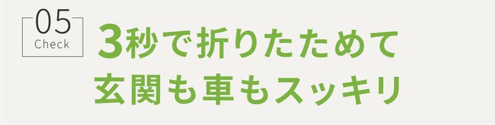 A. 使用後は側面をたたんで約10cm以下の薄さに。玄関の棚や車の隙間へ収納しやすい設計です。