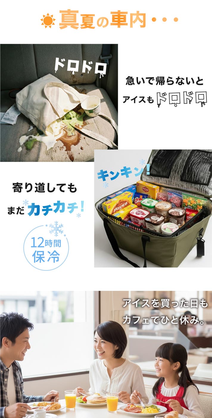 - 【強力12時間保冷×保温】3重極厚生地で鮮度そのまま。アイスも惣菜も安心の大容量。