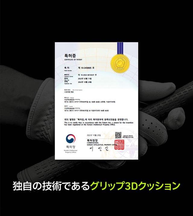 独自の技術であるグリップ3Dクッションは韓国にて特許を取得しました。