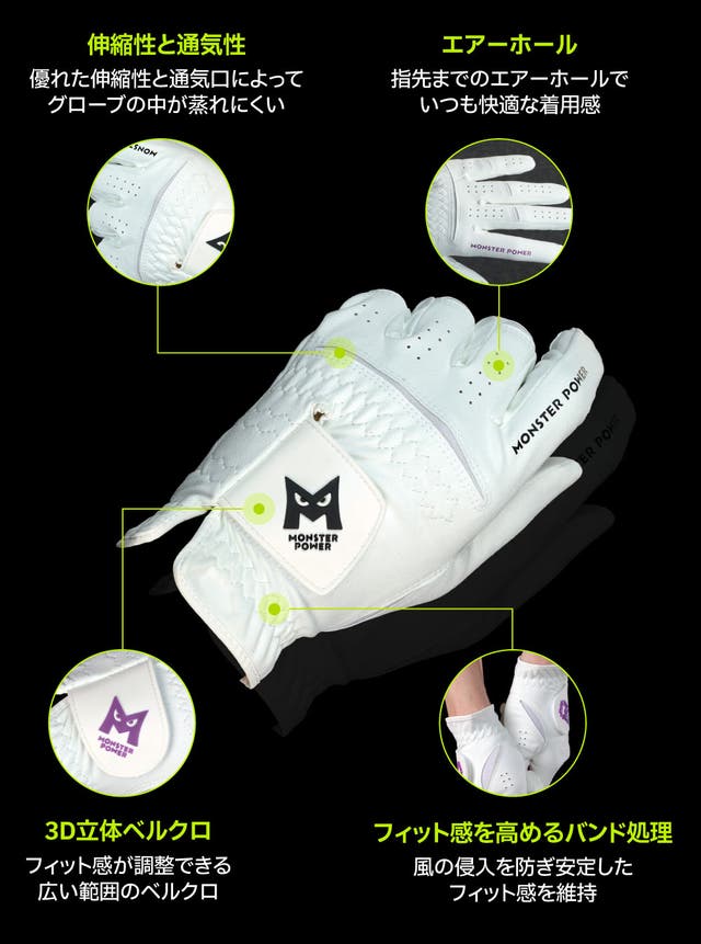 モンスターパワーグローブは安定したクラブのグリップ力を目指すために、グローブにある工夫を施しました!