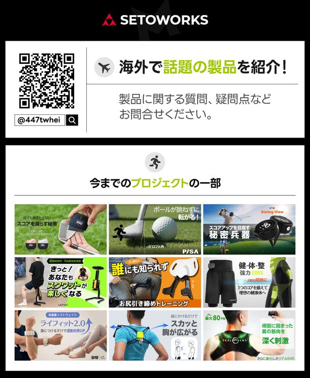 setoworksは日本の新しい製品を外国にいち早く紹介する事業を始め、海外の新しい商品や直接企画した多様なプロダクト製品を日本国内に紹介する事業を展開しています。たくさんの応援の程よろしくお願い致します。