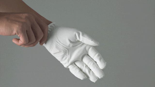 このようにグローブの右にある、3Dクッションにグリップを合わせて握ってください。