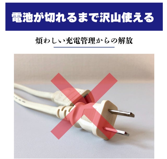 充電式のデバイスでは充電が切れる度に充電をする必要があり、充電を忘れてしまうとバッテリー残高が足りず使えないことも・・・。