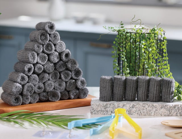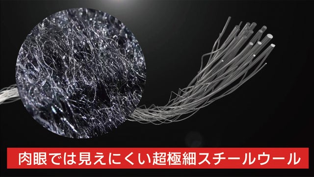 - 鋼を髪の毛よりも細くした超微細スチールウール素材、肉眼で見えにくい細い糸で織ったモンタたわし