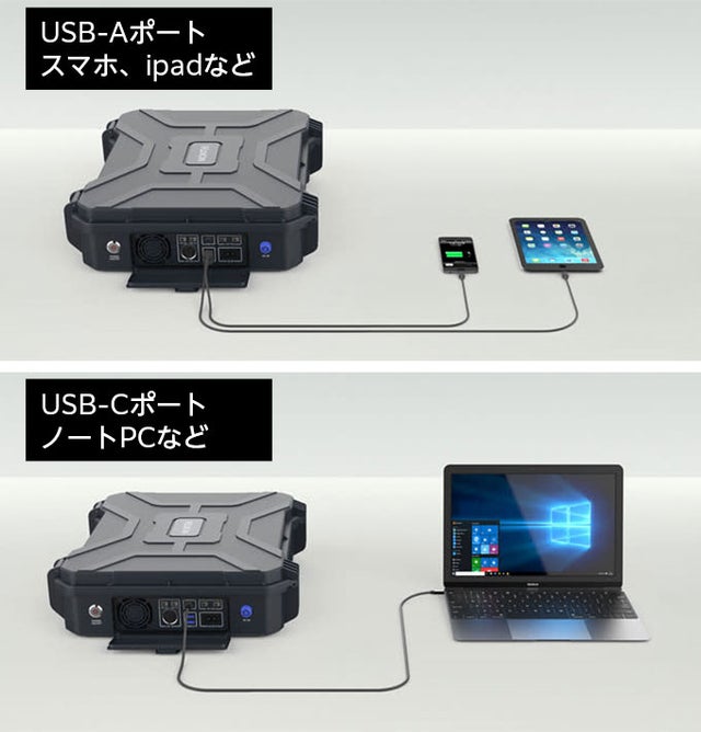 USBポートが搭載されていると直接モバイル端末に充給電できます。