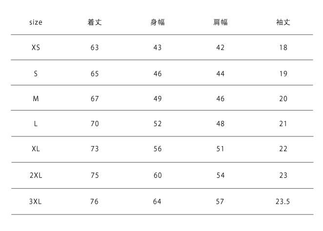 サイズは、【XS-3XL】と幅広く7サイズを用意しています。