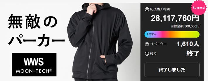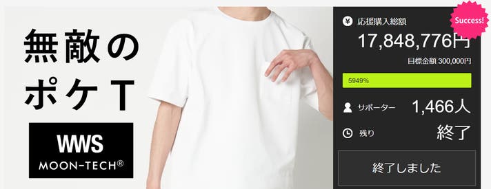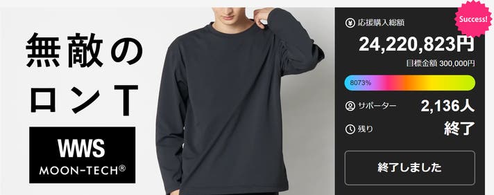 「無敵のポケT」、「無敵のパーカー」、「無敵のロンT」と続いたその挑戦は、累計でなんと5,000名を超えるみなさまより、70百万円を超える応援をいただいています。