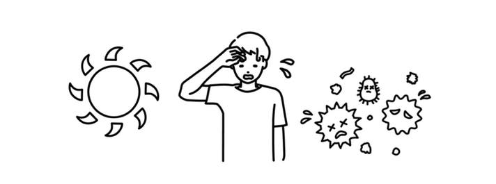 臭い、汗ジミ、べたつき、突っ張り、シワ、乾きにくさ、アイロンがけの手間――