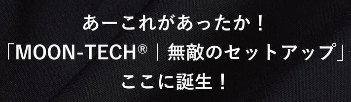 わたしたちはそんな現代のビジネス/ライフスタイルに合う新しいセットアップを求め、「MOON-TECH®」の特長を最大限に活かしつつ、“大人が日常で毎日使えるちょううどいい軽やかなセットアップ”を目指し、商品仕様にこだわりました。