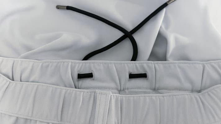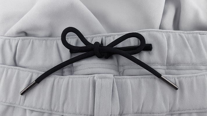 ドローコードは外側でも内側でも結べる特別仕様で、スタイルを自在に調整。