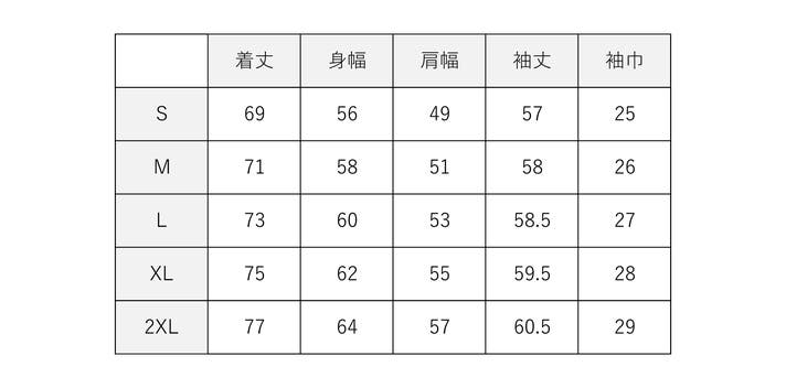サイズ展開は【S、M、L、XL、2XL】の【5サイズ展開】としています。